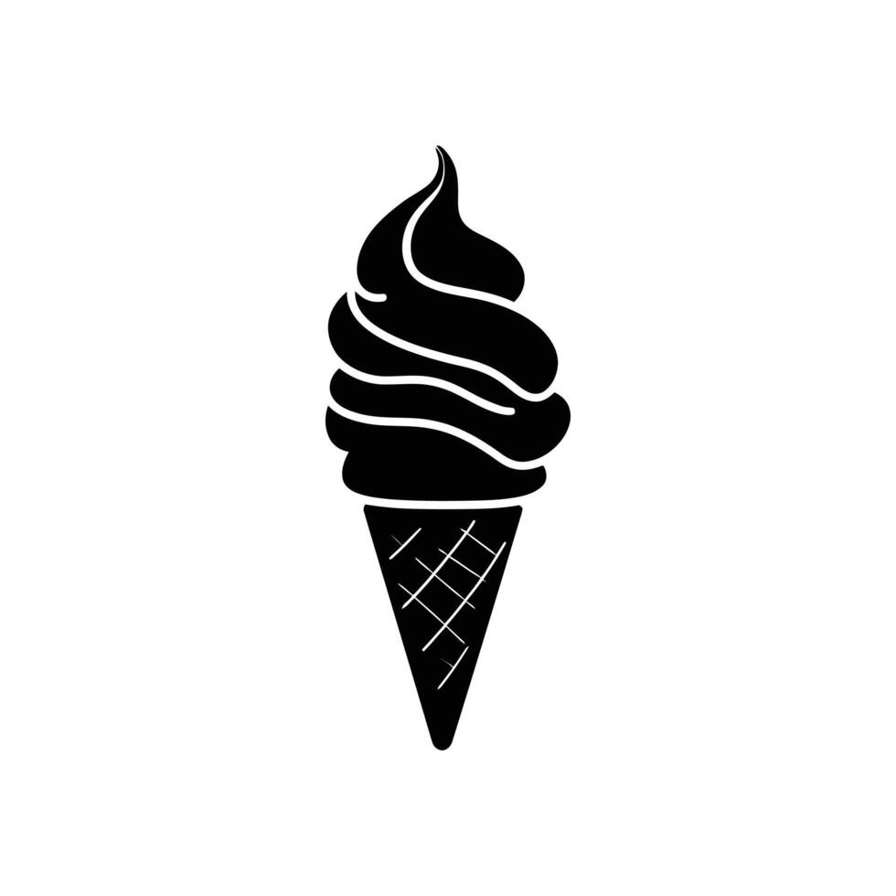 Black ice cream cone icon with swirled soft serve on white background Pro Vector