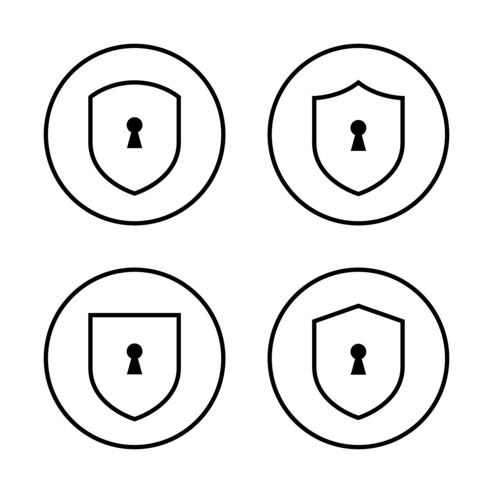 Shield with keyhole icon set. Outline lock protection symbol in circle line Pro Vector