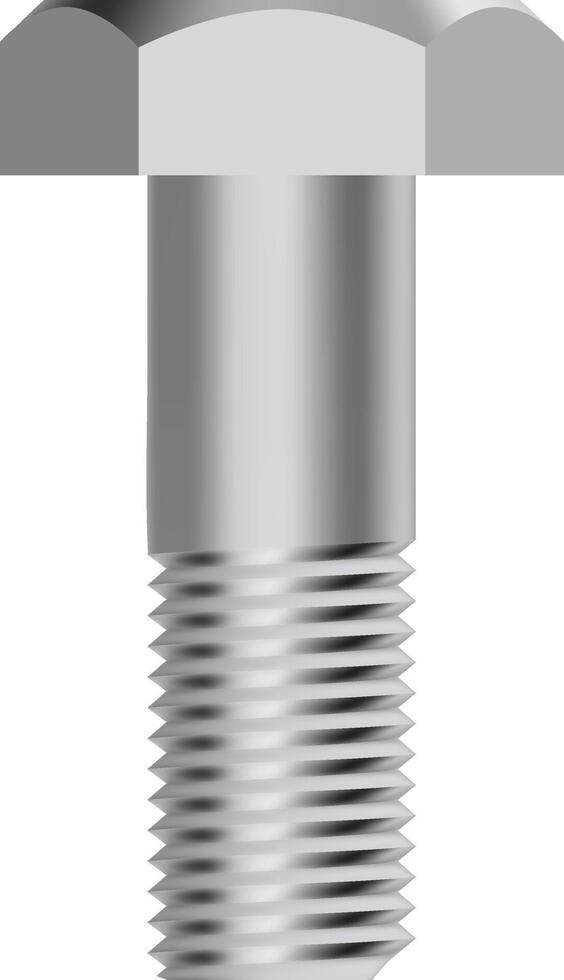 Close up view of a shiny metal bolt featuring a screw thread and a hexagonal head, set against a transparent background, ideal for industrial or construction related designs Pro Vector