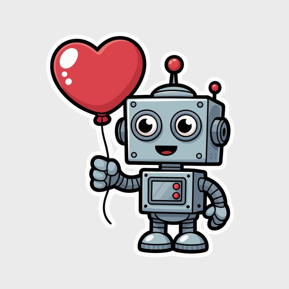 A cartoon robot holding a red heartshaped balloon, isolated on white background the robot has a cute and friendly expression, with big eyes and a small smile, standing on its feet Pro Vector