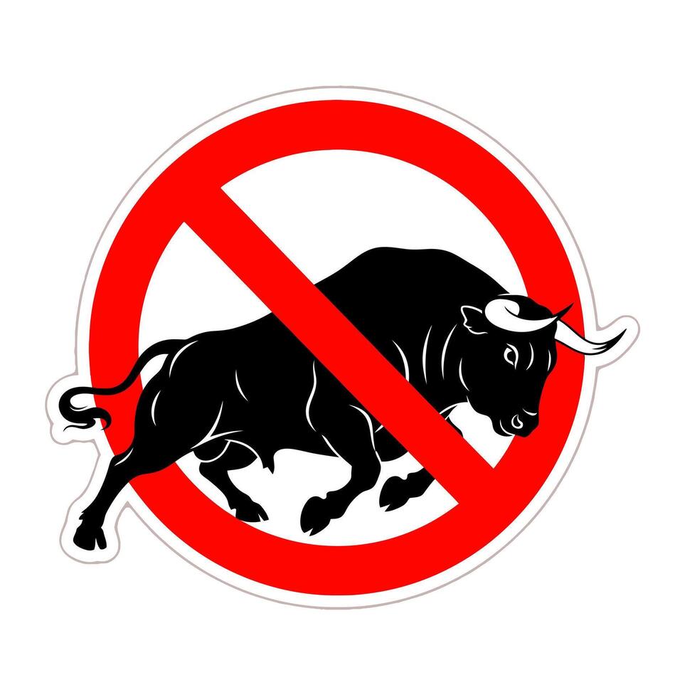 Prohibition sign with a bull, isolated on white background, symbolizing forbidden or restricted access, warning of danger, and caution against aggressive animal behavior Pro Vector