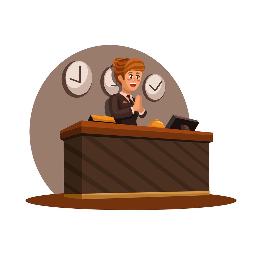 Receptionist at Desk with Clocks and Computer Pro Vector