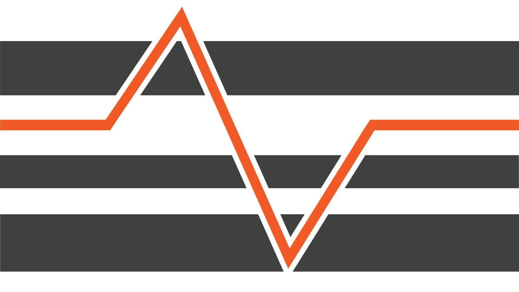 Abstract with bold orange line forming peaks and valleys over dark gray geometric shapes modern minimal design for business growth data and technology theme Pro Vector