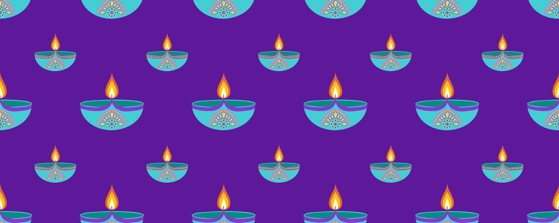 Festive Diwali seamless pattern with diyas in flat style. Deepavali illustration for digital and print use Pro Vector