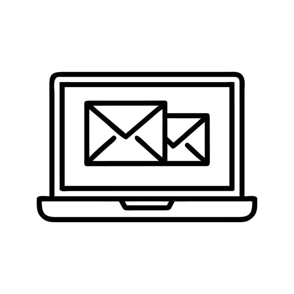 Laptop Displaying Messages Icons in Outline Style on White Background Pro Vector
