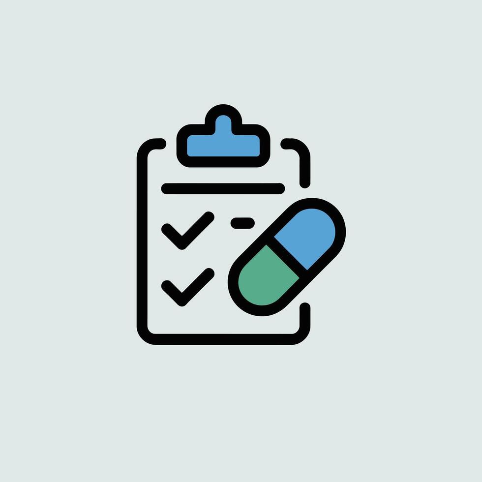 Minimalist Icon Design Featuring a Clipboard with Checkmarks and a Teal and Blue Capsule Pill on a Light Gray Background Pro Vector