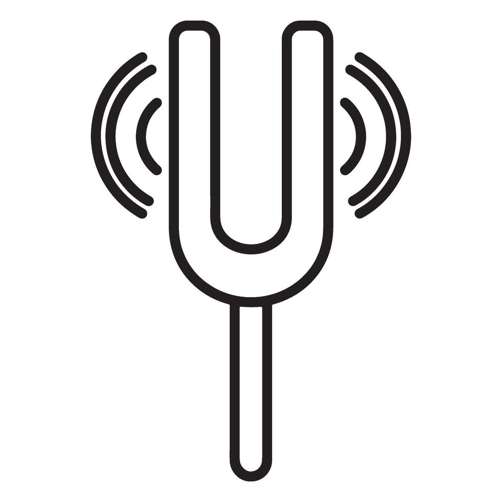 Simple black outline drawing of a tuning fork with sound waves for music concepts Pro Vector