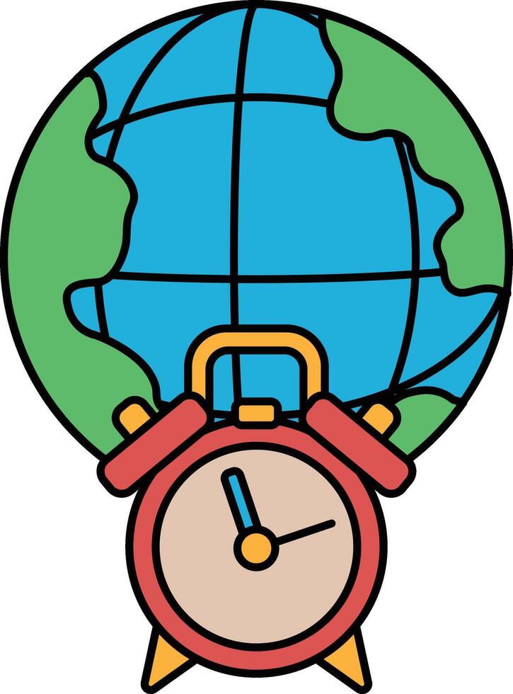 A clock is on a globe with the hands pointing to the number 12 Pro Vector