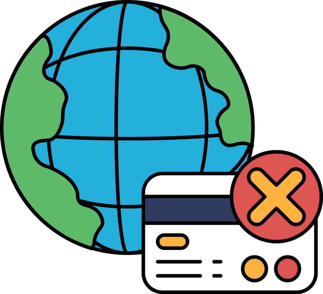 A black and white drawing of a globe with a credit card on it and an X on it Pro Vector