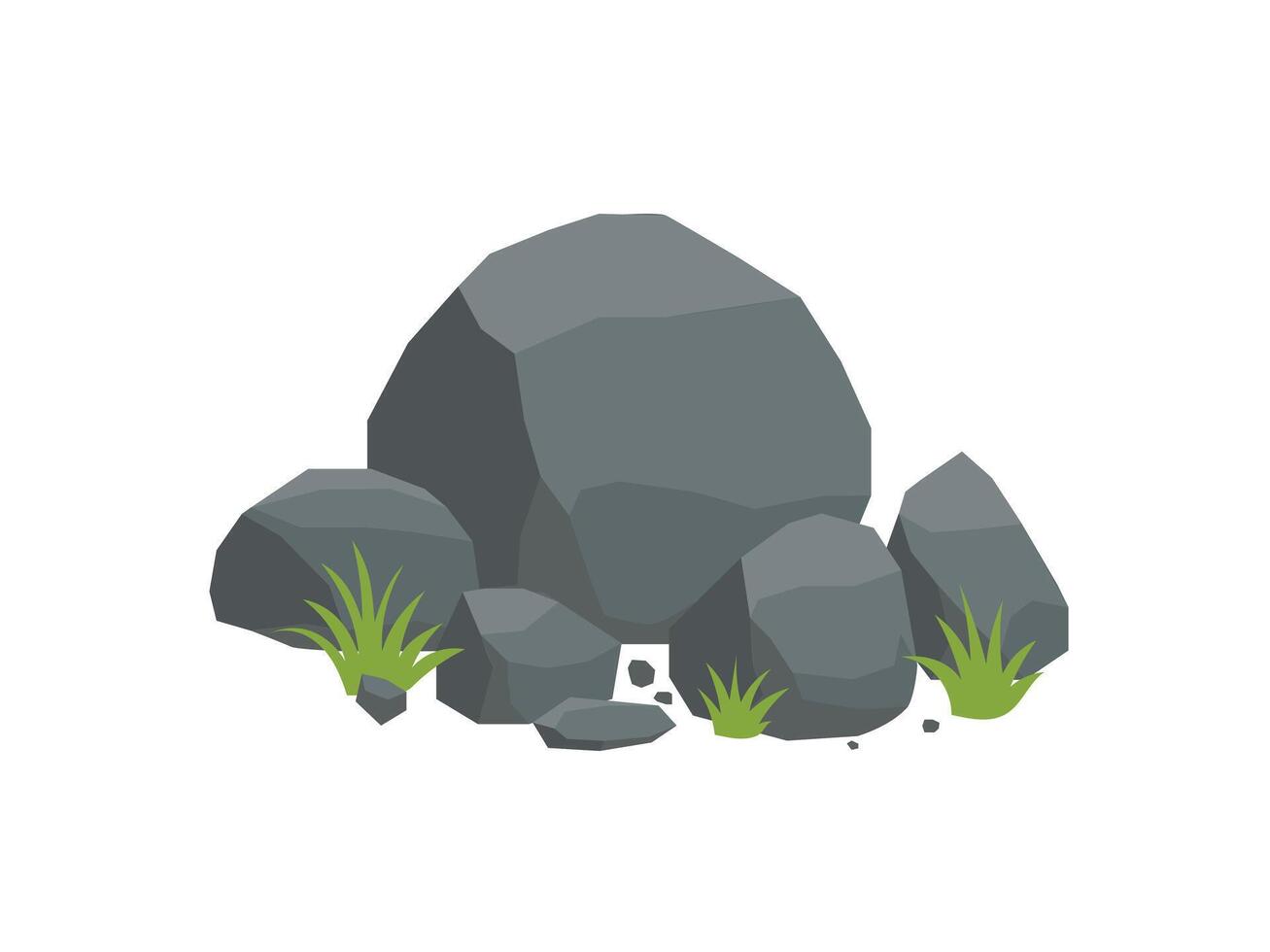Rock And Grass Design Element, rocks and stones, with blades of grass Pro Vector
