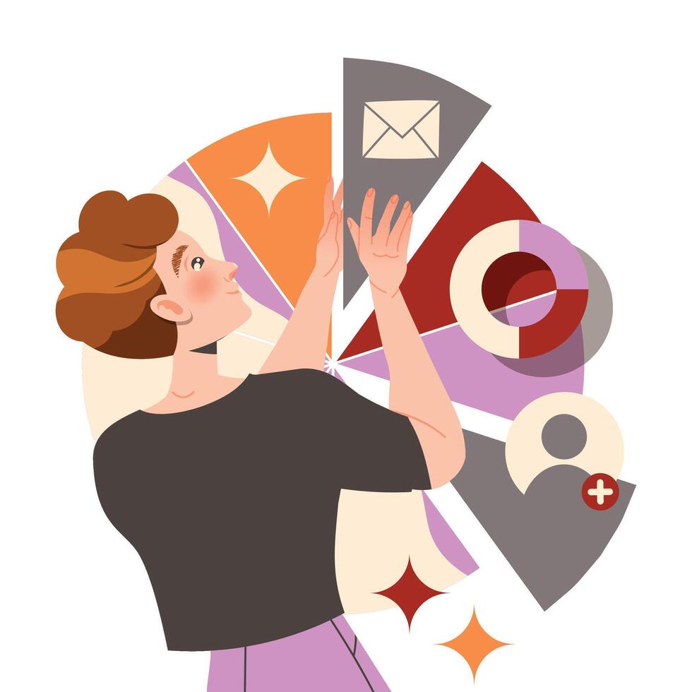 Man Character with Pie Chart Working with Information Analyzing and Browsing Data Illustration Pro Vector