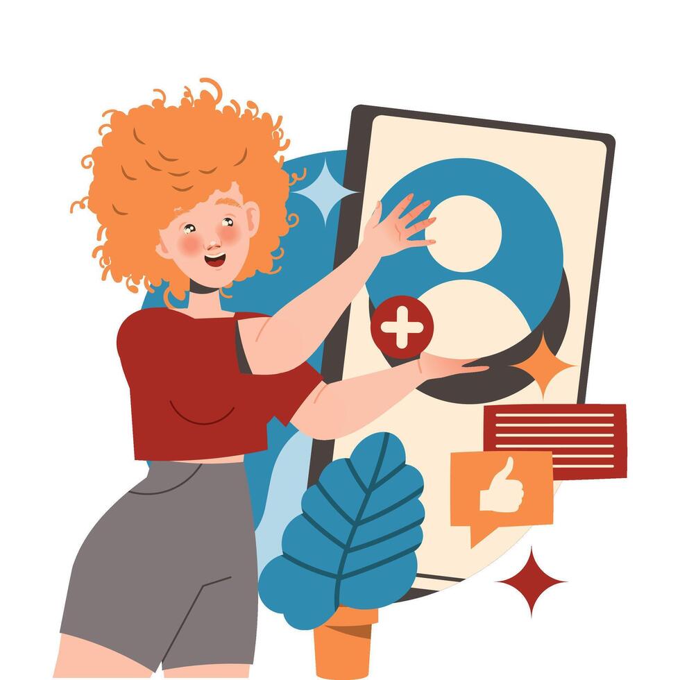 Redhead Woman Character Working with Information on Smartphone Screen Analyzing and Browsing Data Illustration Pro Vector