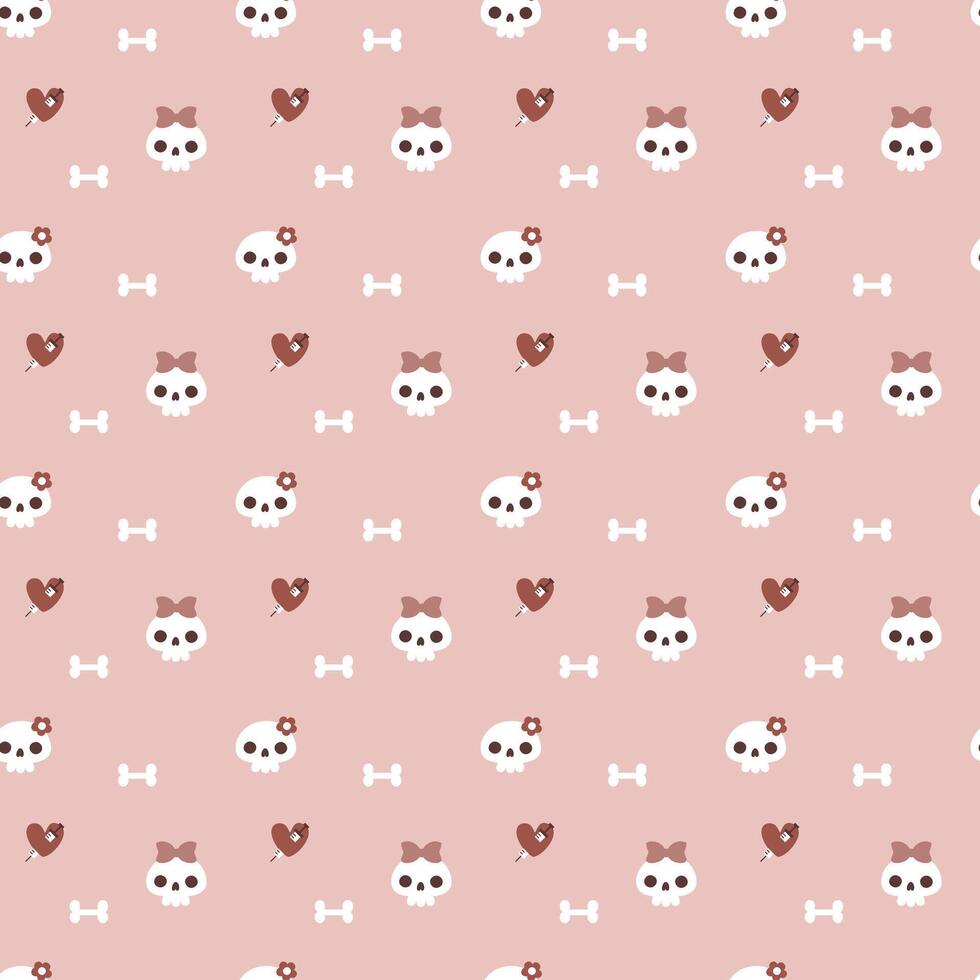 seamless minimal skull and bone halloween repeat pattern in pink background Pro Vector