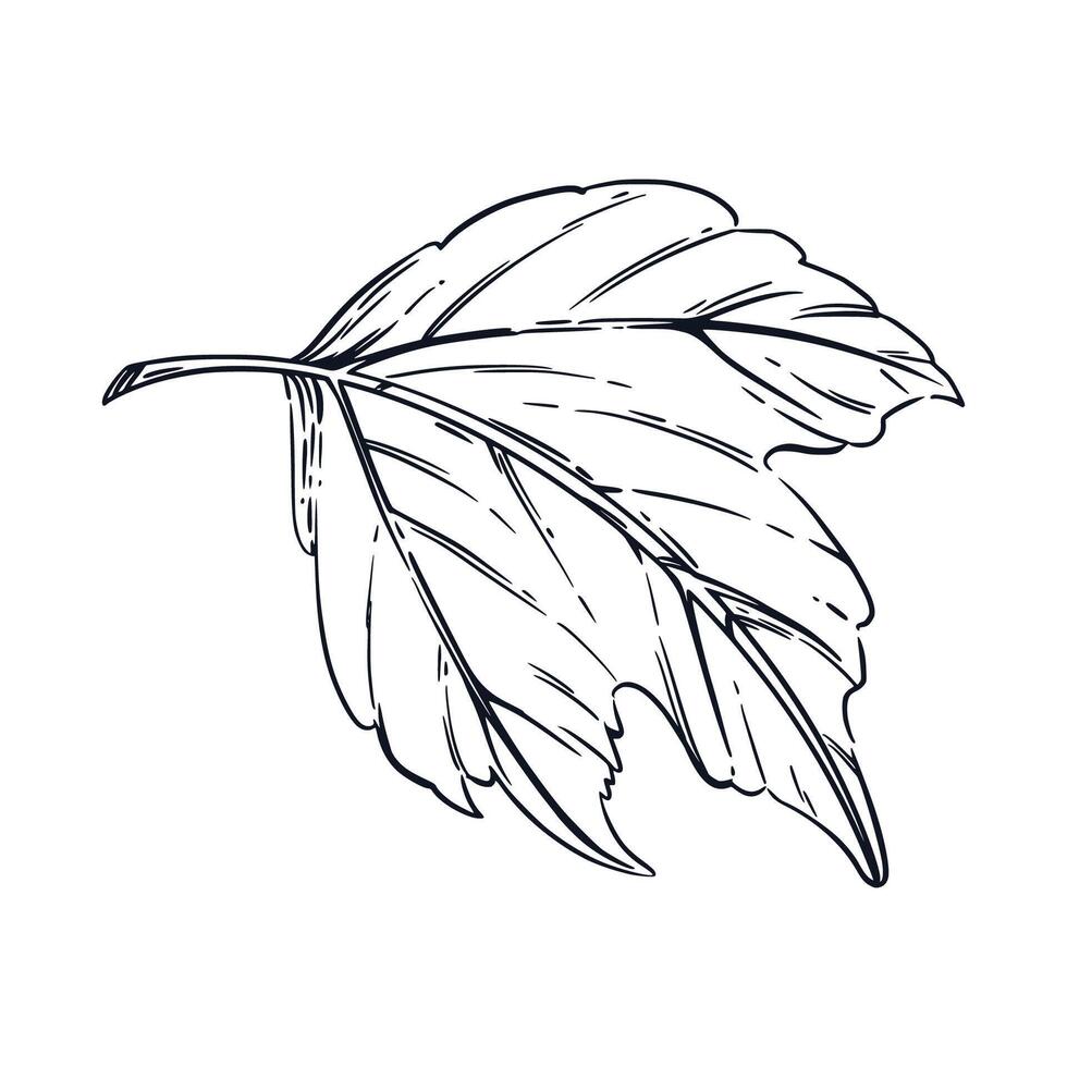 A large sheet of viburnum, a shrub, hand-drawn in ink and translated into a . The illustration is suitable for printing on paper and fabric, for textile design and packaging of food, cosmetics Pro Vector