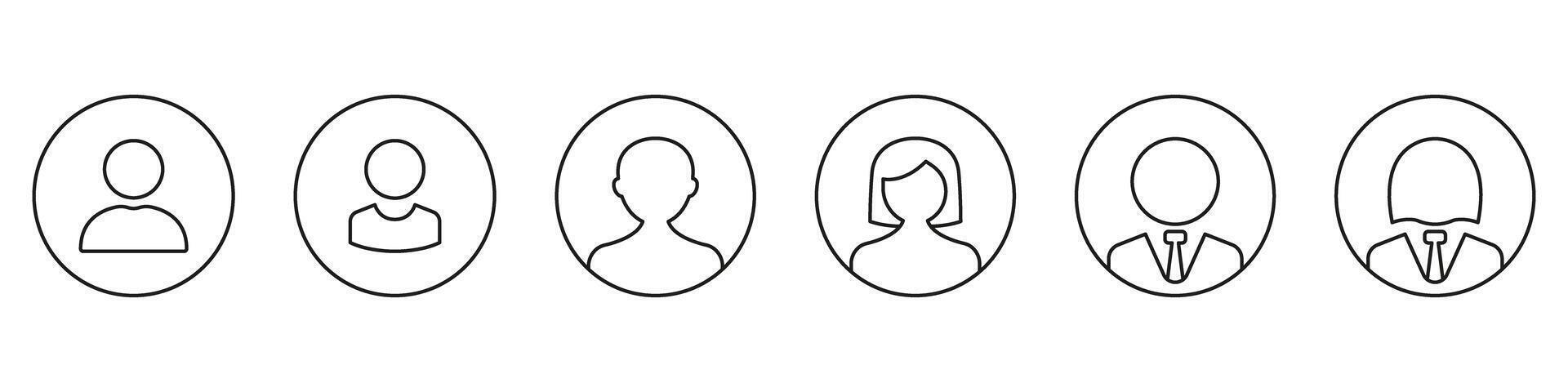 Rounded User Profile Avatar Line Icon Set. Circle Frame Human Icons for Interface, Male and Female Faces Outline Symbol Collection. Editable Stroke. Isolated Illustration Pro Vector