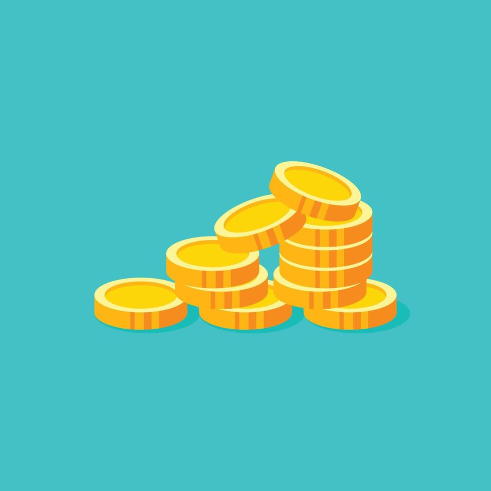 A simple illustration of a stack of shiny gold coins on a teal background. The minimalist, flat design is perfect for finance, wealth, and success concepts. Easy to use for websites, apps Pro Vector