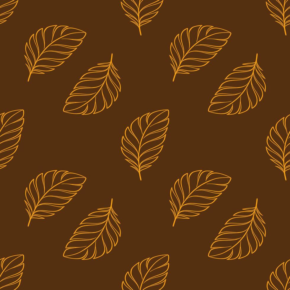 Seamless pattern with stylized orange leaves on a dark brown background, creating a sophisticated and minimalist autumnal design ideal for various applications. Pro Vector