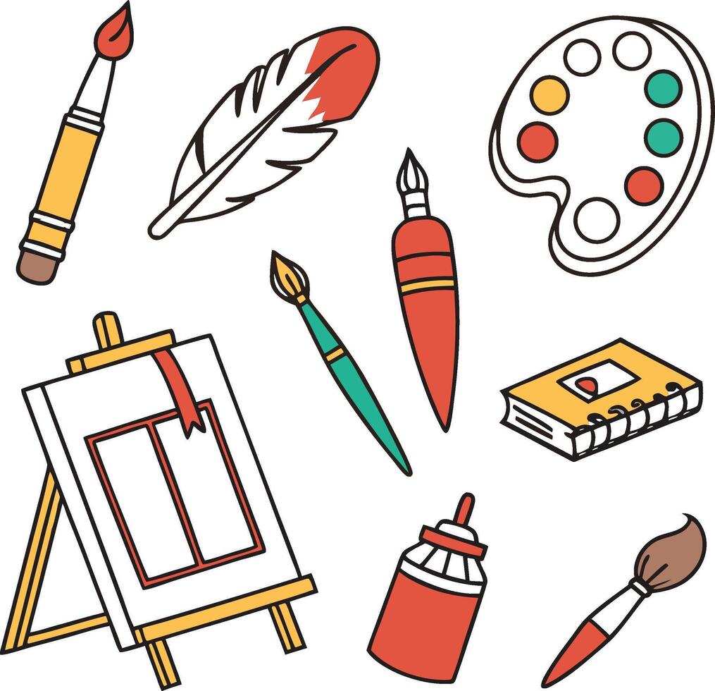 Creative icon set featuring paintbrush and palette designs for artistic projects and digital applications vector