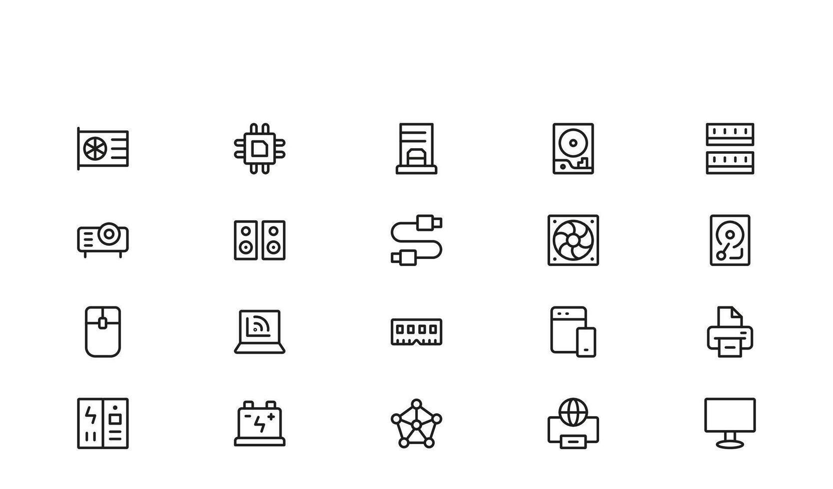 Modern Internet and Computer Icon Bundle Set in Line Style Featuring Network, Cloud, and Technology Symbols Pro Vector