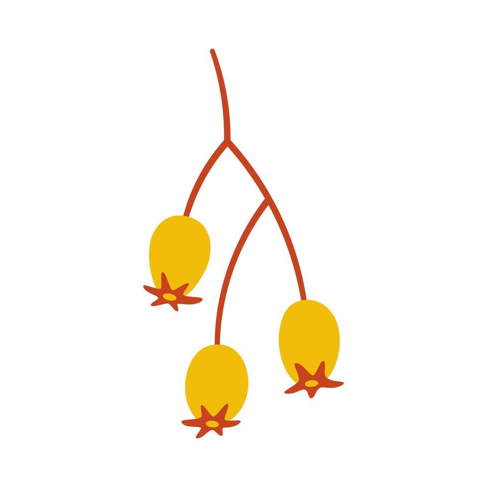 Seeds of shrub, yellow berries on a twig. Simple handdrawn element on a white background for stickers, web design, and postcards Pro Vector