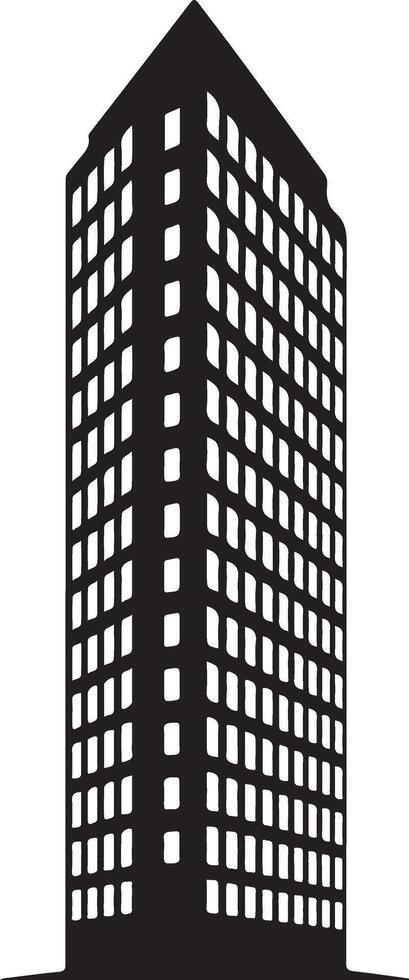 Silhouette of a tall skyscraper isolated on white background, representing modern urban architecture vector