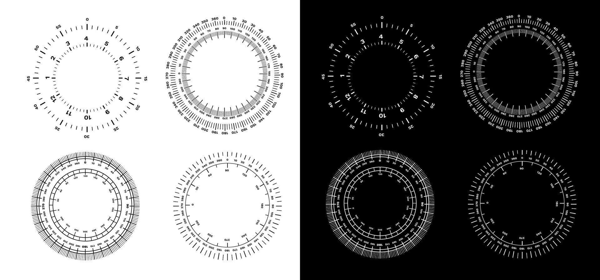 Circular measuring scales with detailed radial ticks and numeric indicators for precision use Pro Vector
