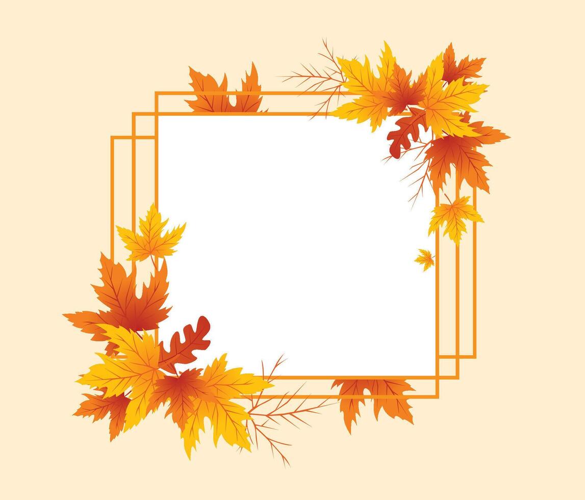 Autumn Leaves Frame Background, Square Frame Autumn Background, Maple Leaf Autumn Background Pro Vector