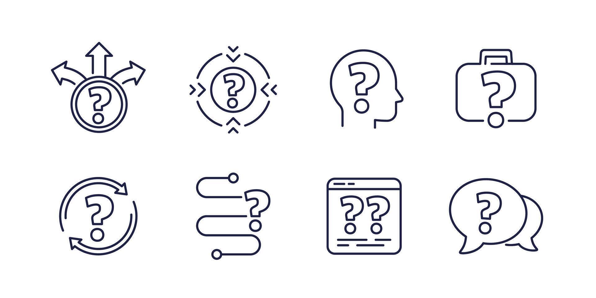 question line icons, problem, unknown and faq symbols with question marks Pro Vector