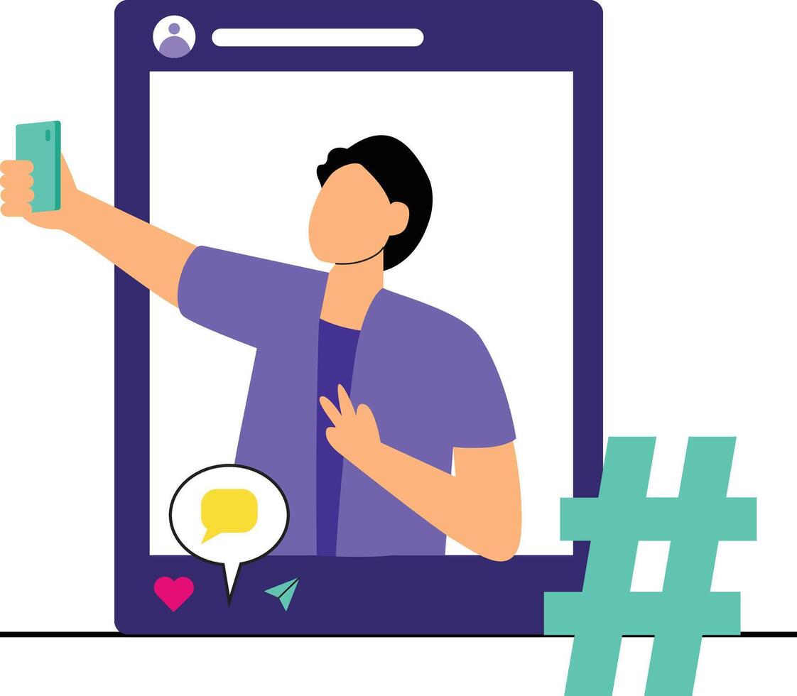 Man Taking Selfie Inside Social Media Interface Frame Pro Vector