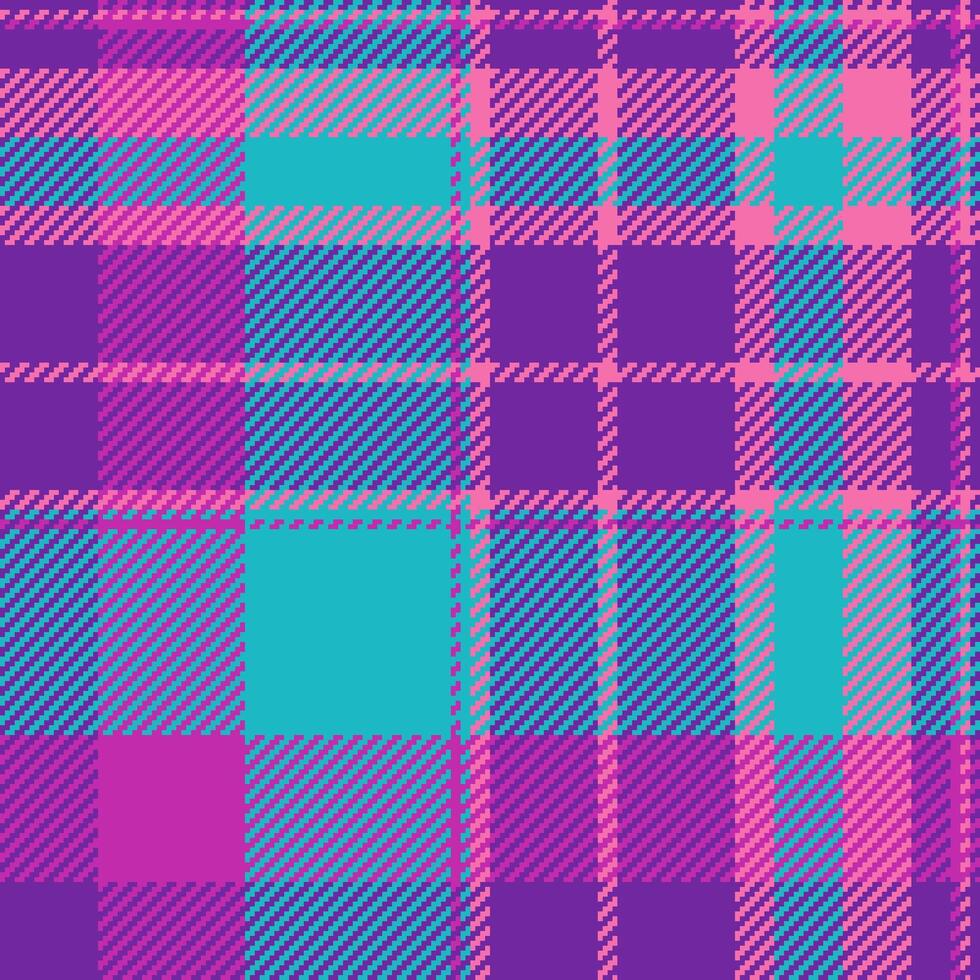 Vibrant tartan pattern with pixelated texture. A lively design of interwoven squares in pink, purple and teal. Ideal for backgrounds, textiles, and graphic design projects. Pro Vector