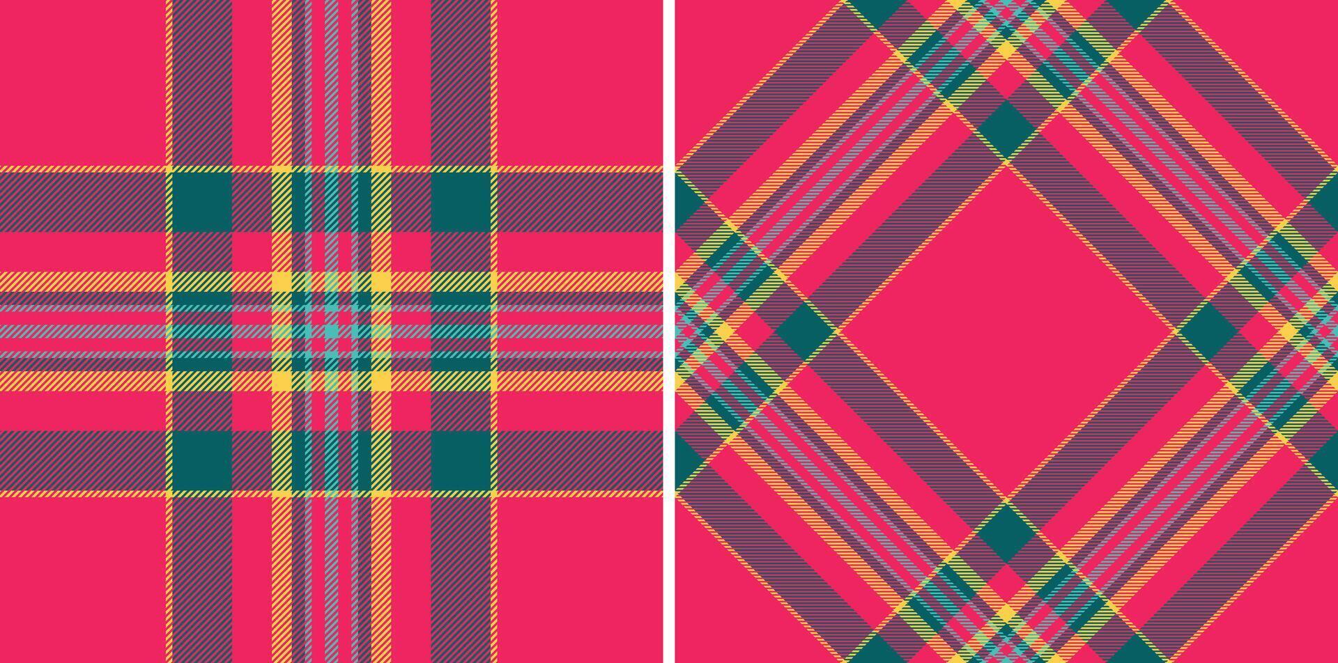 Vibrant tartan pattern, showcasing both straight and diagonal weaves. Perfect for textile design, backgrounds, or adding a touch of classic flair to creative projects. Pro Vector