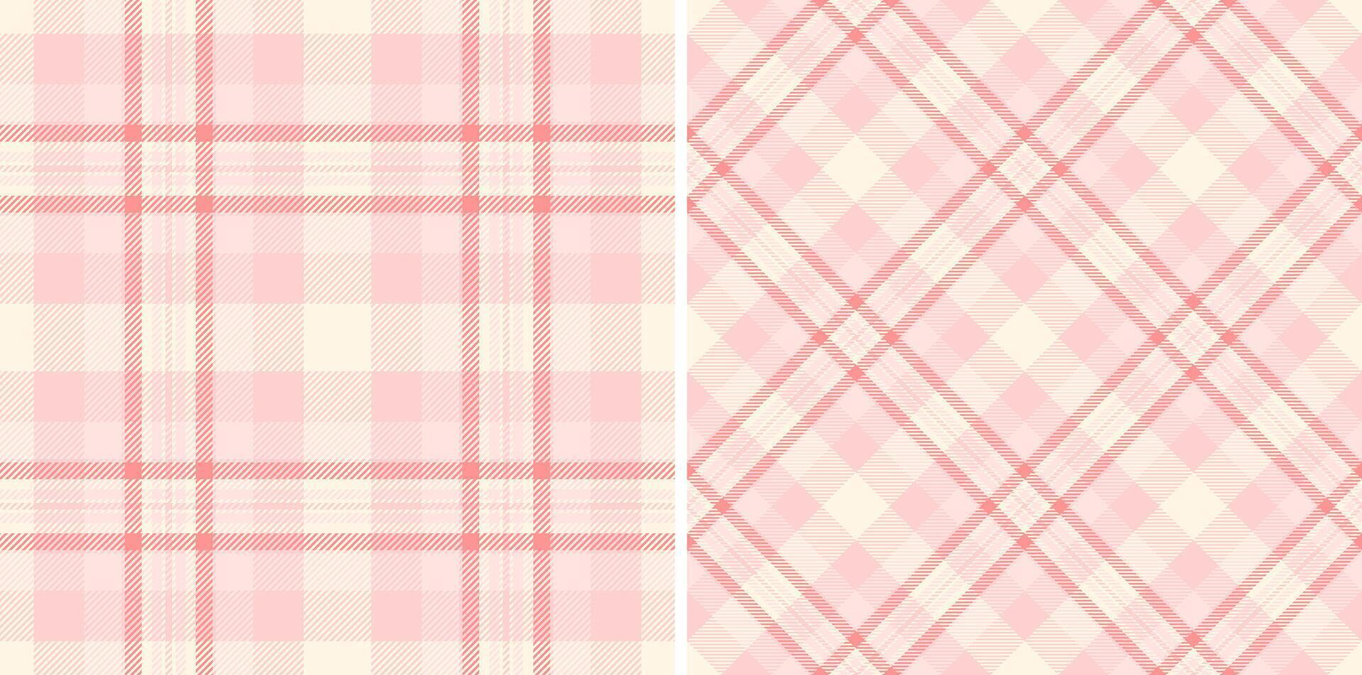 Soft pink plaid textures set. Seamless patterns in regular and diagonal weaves, perfect for backgrounds, textiles, and design projects needing a gentle, classic touch. Pro Vector