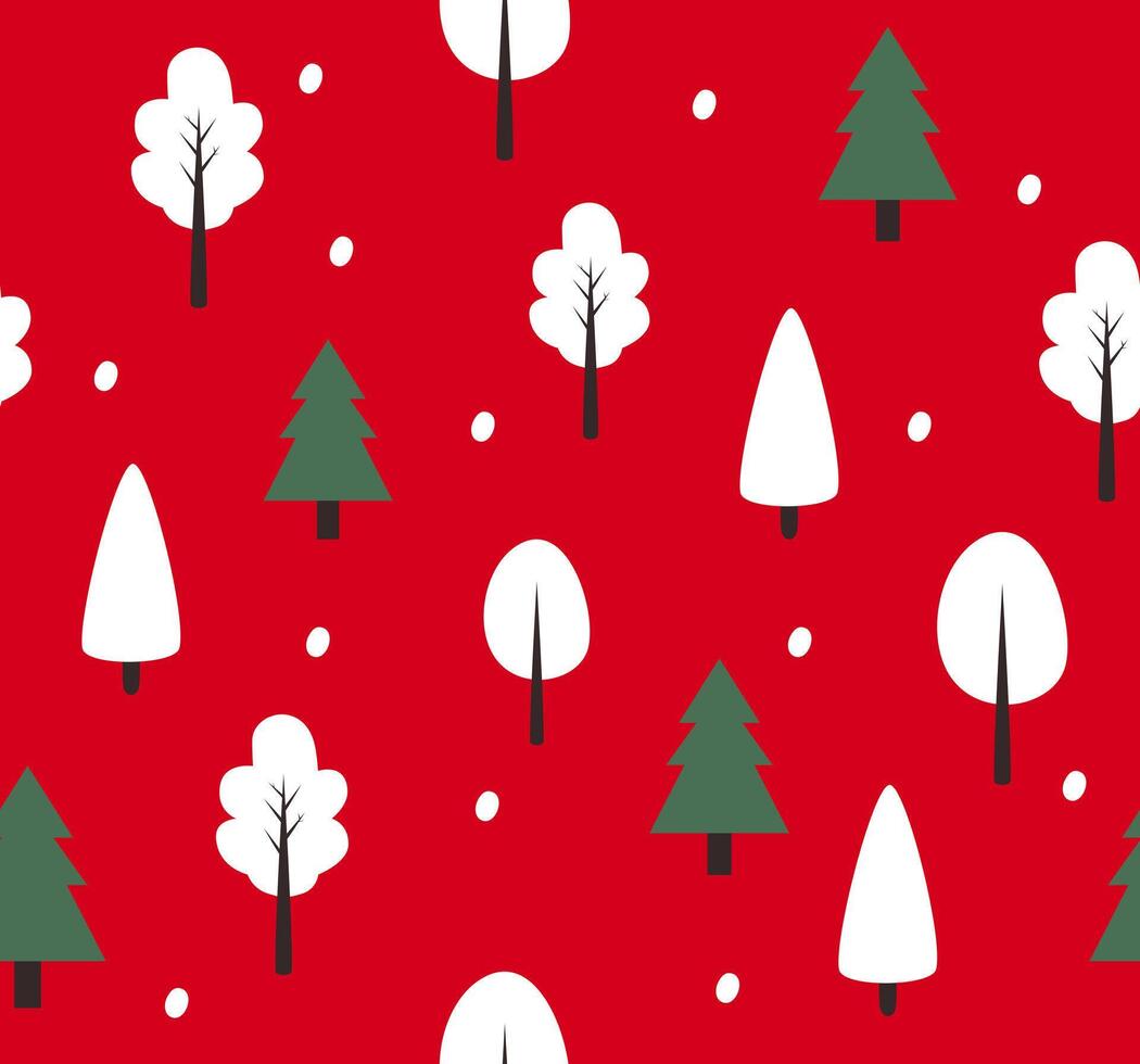 Seamless Christmas pattern with trees and snowflakes on a red background. vector