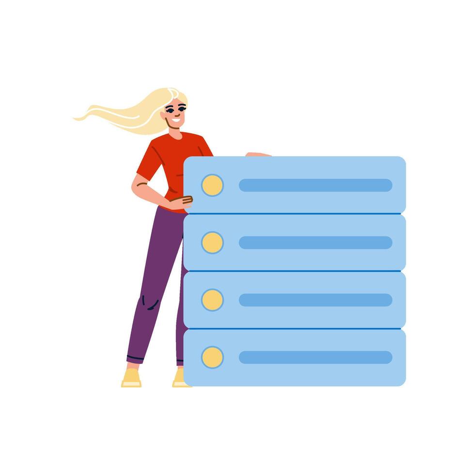 System administrator managing server rack, efficient data center operations Pro Vector