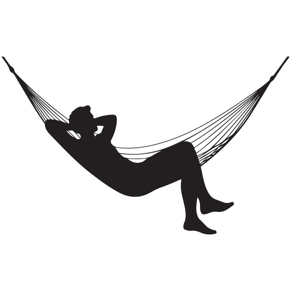 Black silhouette of a person relaxing in a hammock on a white background Pro Vector