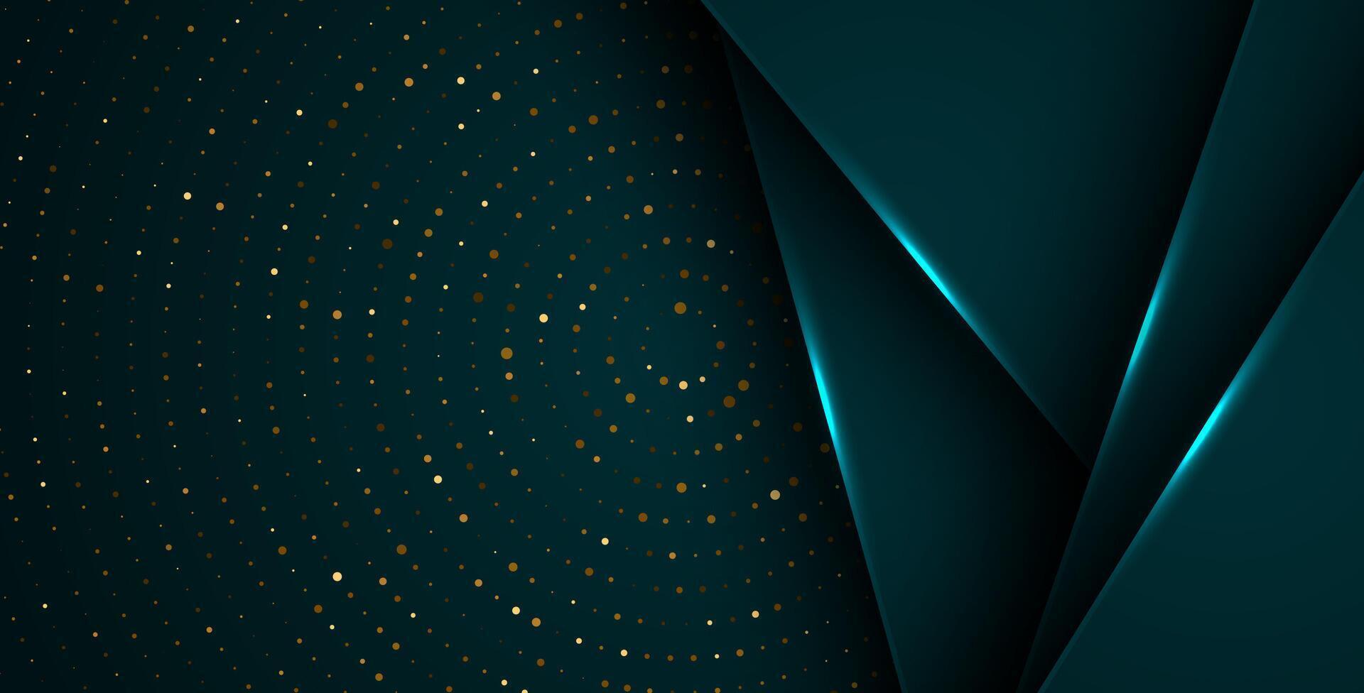 abstract dark green overlap layers with white light, circle texture with silver and golden glitters dots element decoration. eps10 Pro Vector
