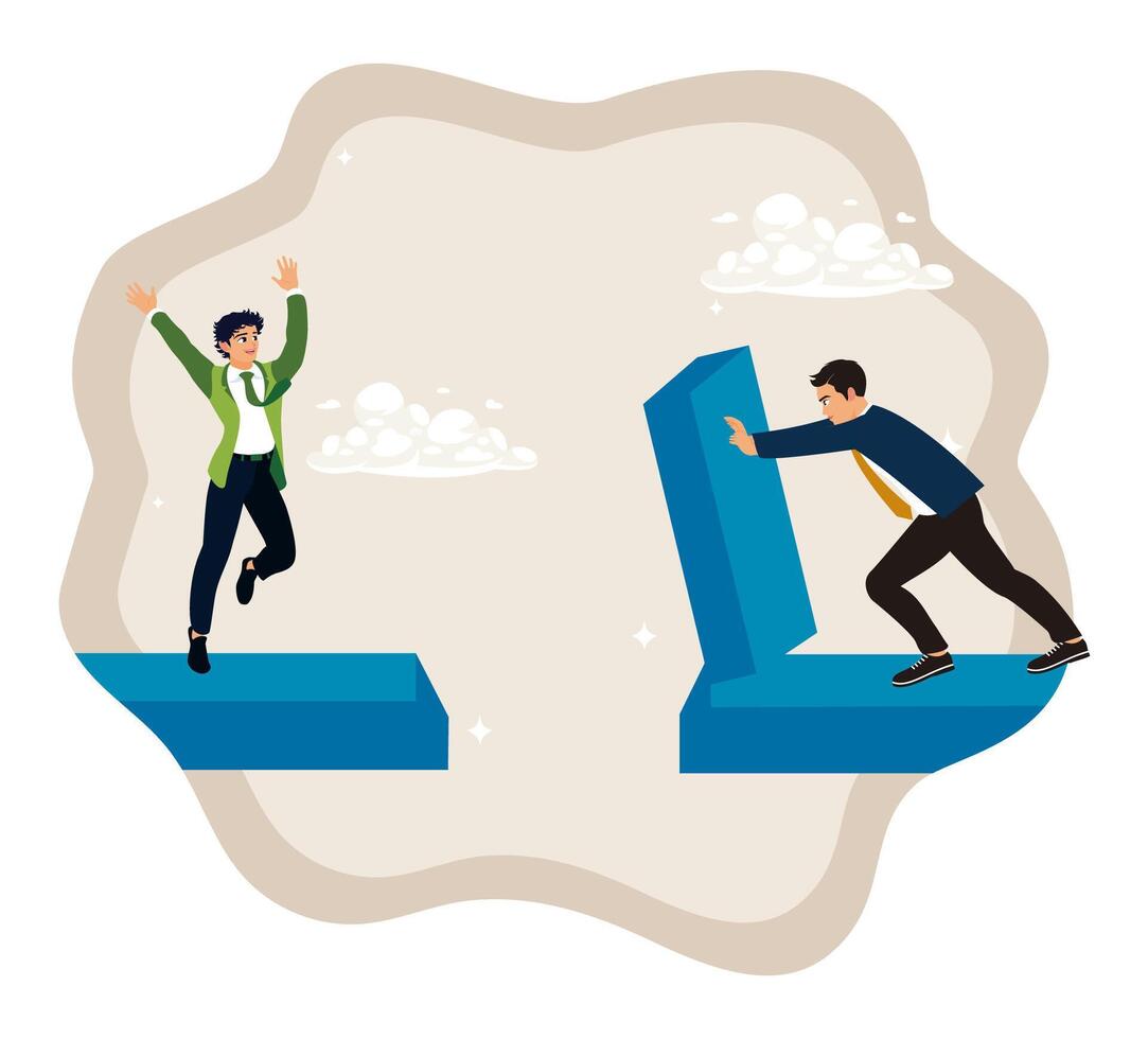 Teamwork helps overcome challenges and solve problems towards success. Pro Vector
