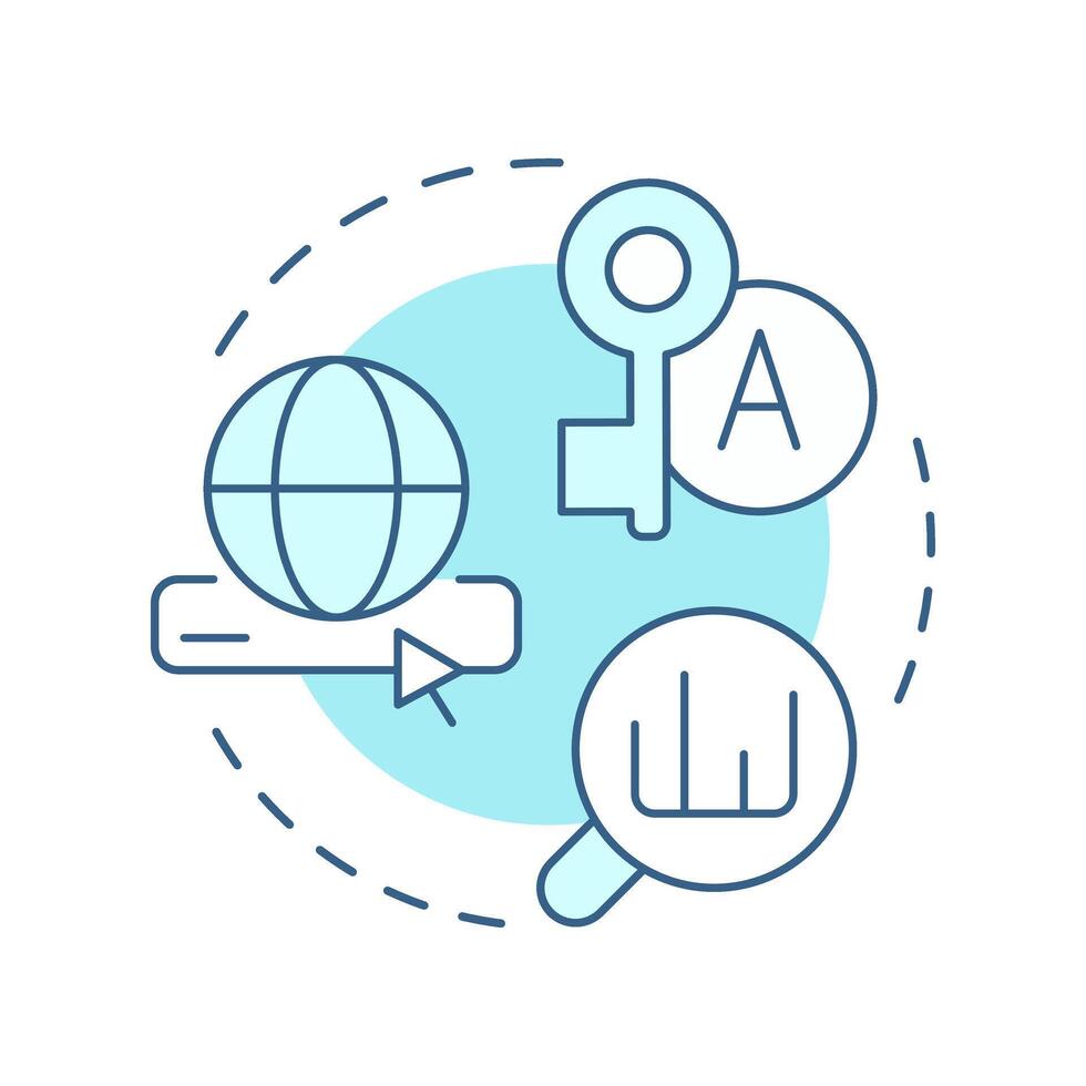 Keyword research soft blue concept icon. Marketing campaign, analysis. Web search. Round shape line illustration. Abstract idea. Graphic design. Easy to use in presentation, infographic Pro Vector