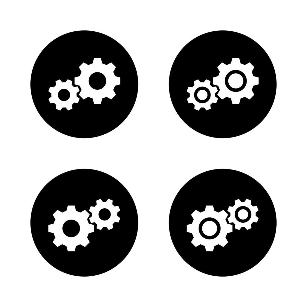 Gear cogwheel icon set in black circle. System settings configuration symbol Pro Vector