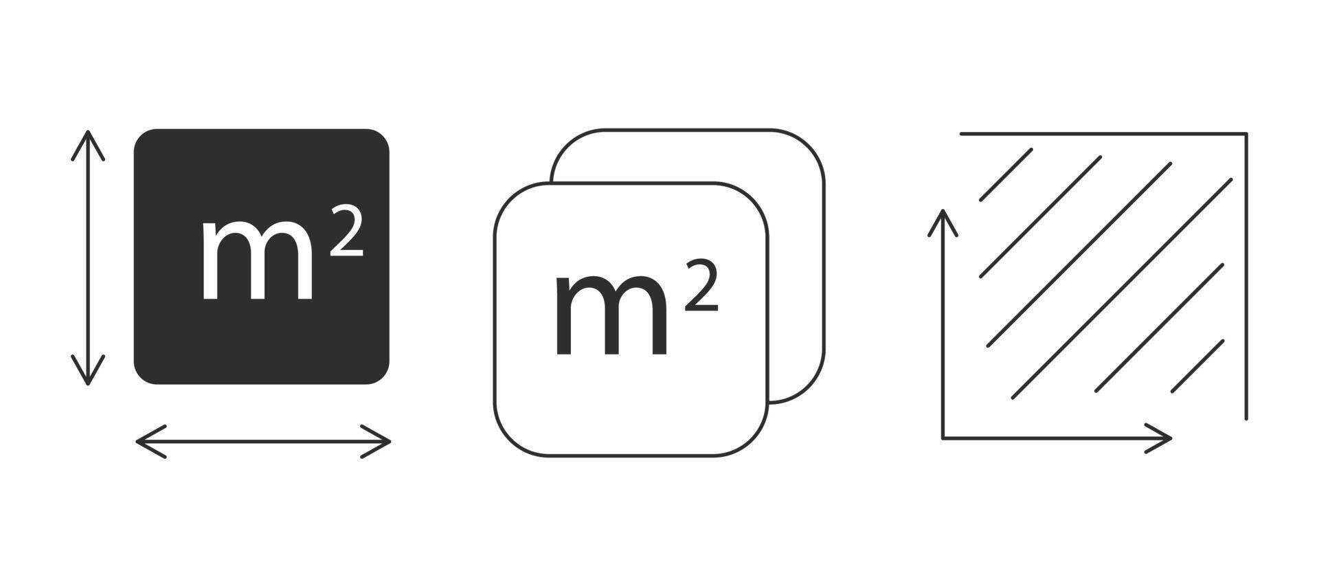 Square meter icon quantity area, m2 measuring area sign symbol. Simple territory measurement. Flat area square meter. Pro Vector