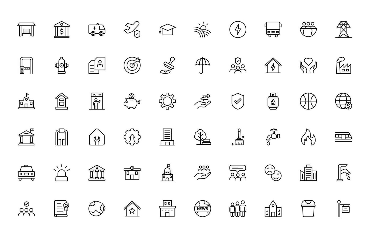 Set of outline Public Services icons. Minimalist thin linear web icon set. Line icons related to utilities. Gas, electricity, heating. Pro Vector