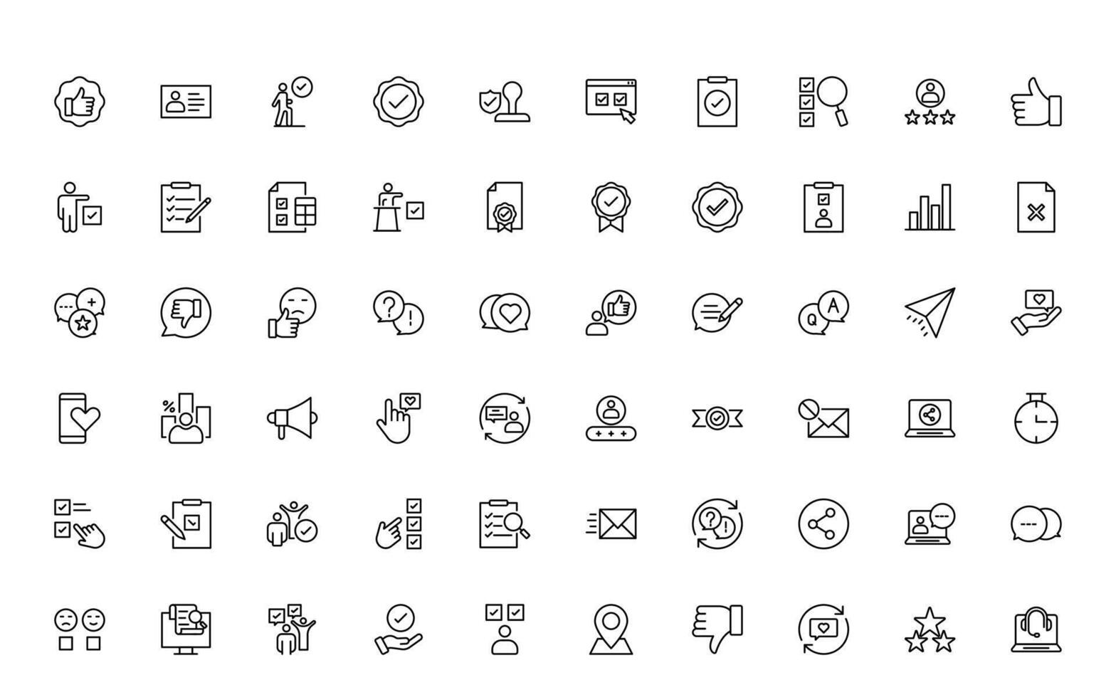 Survey feedback, testimonial, customer thin line icons. For website marketing design, template, ui, etc. Pro Vector