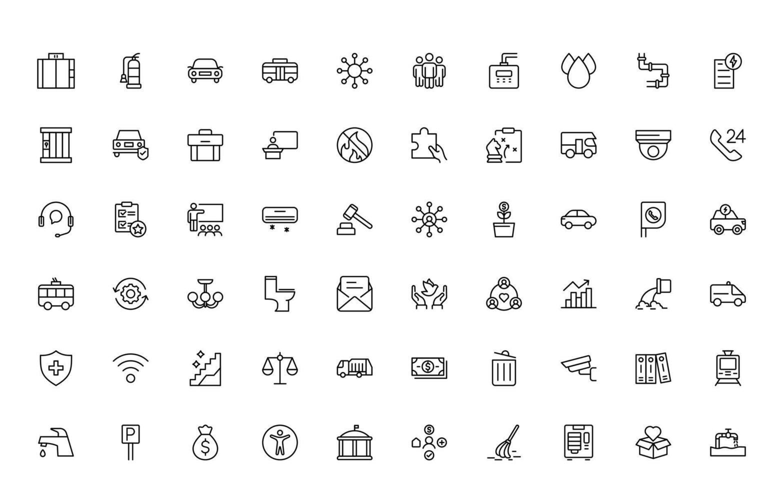 Set of outline Public Services icons. Minimalist thin linear web icon set. Line icons related to public utilities. Gas, electricity, heating. Pro Vector
