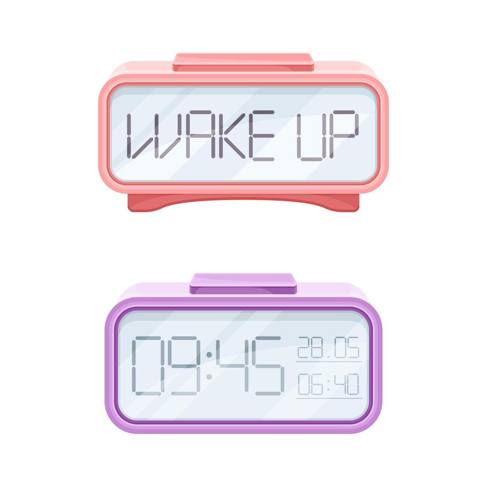 Alarm Clock Displaying Time as Good Morning Symbol and Attribute Set Pro Vector