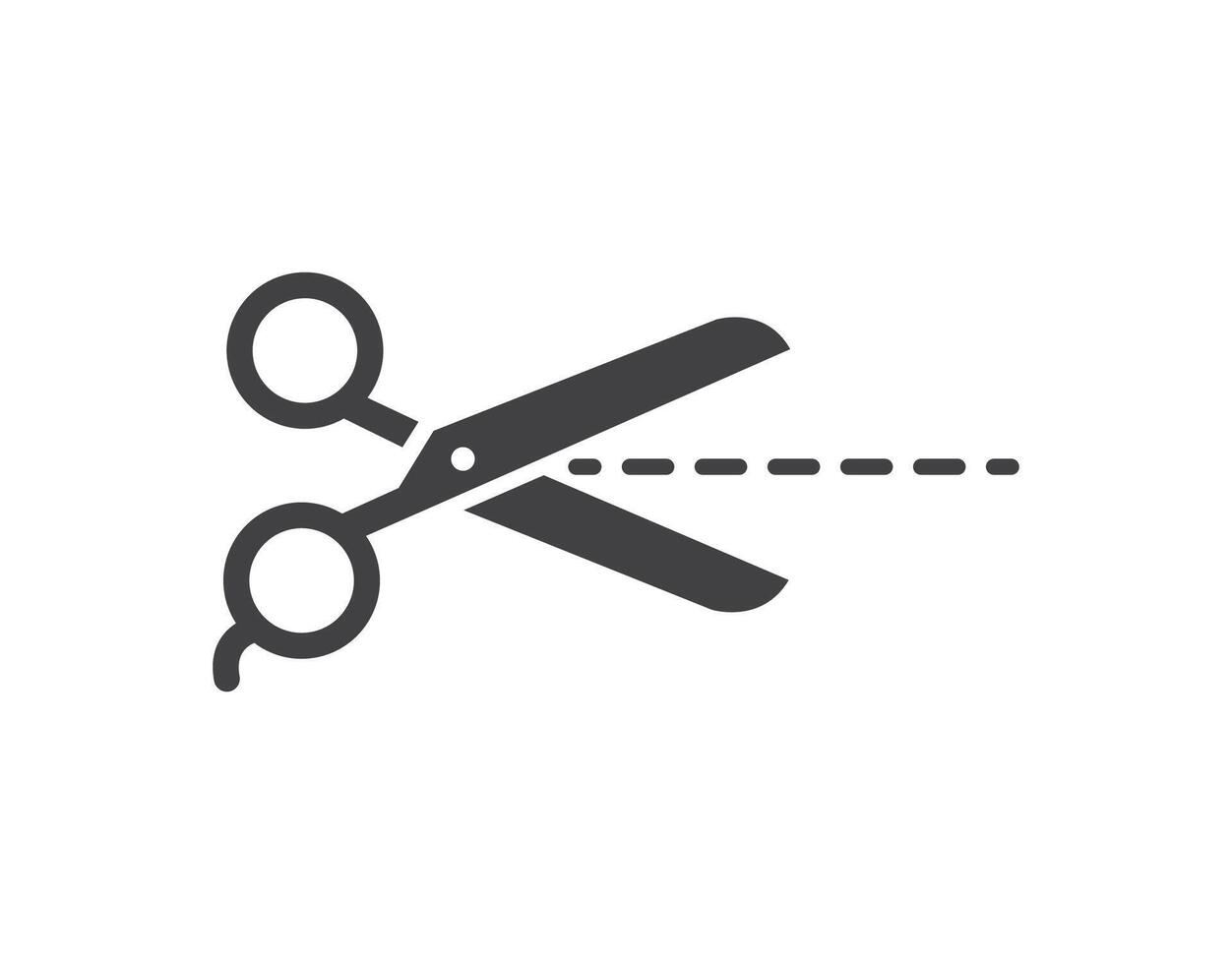 Simple scissors with dash line icon isolated flat style design. Pro Vector
