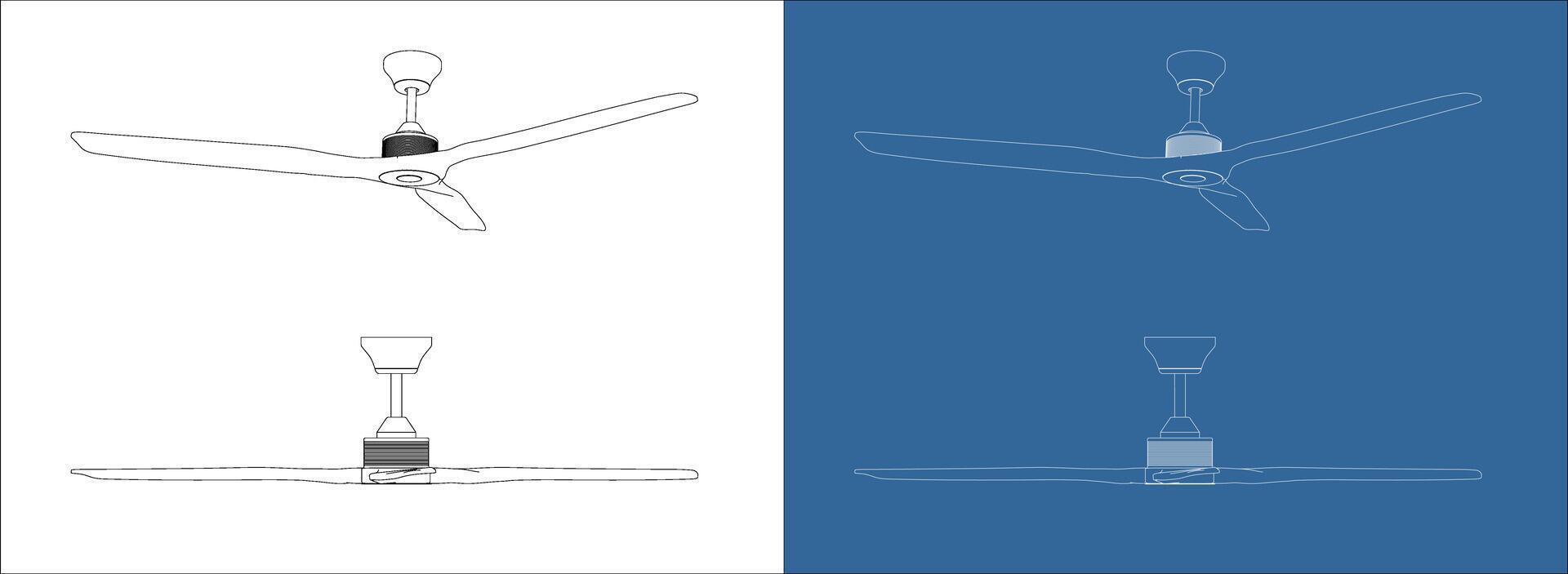 Set Blueprint Ceiling Fan from two different angles Pro Vector