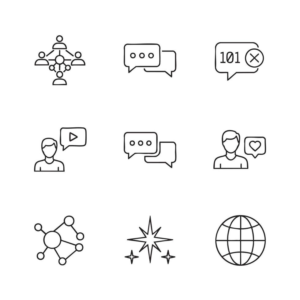 Collection of nine social media and communication icons in a grid layout on a white background Pro Vector