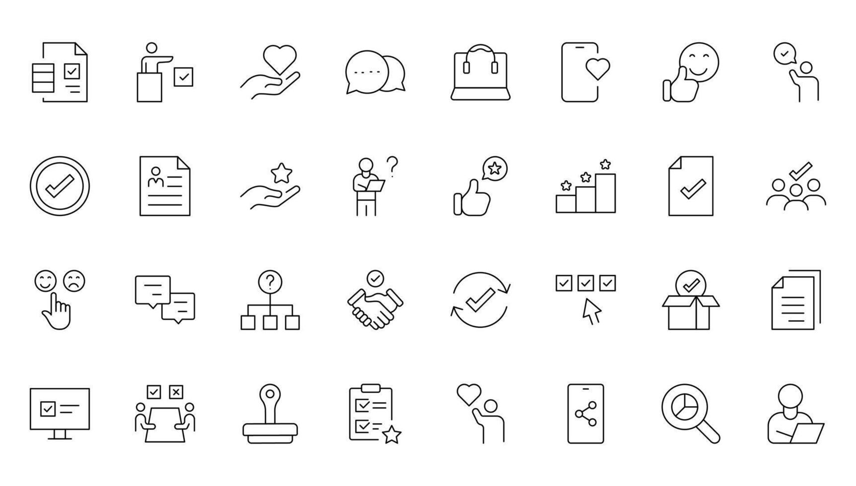 Survey and feedback, testimonial, customer thin line icons. For website marketing design, template, ui, and more. Pro Vector