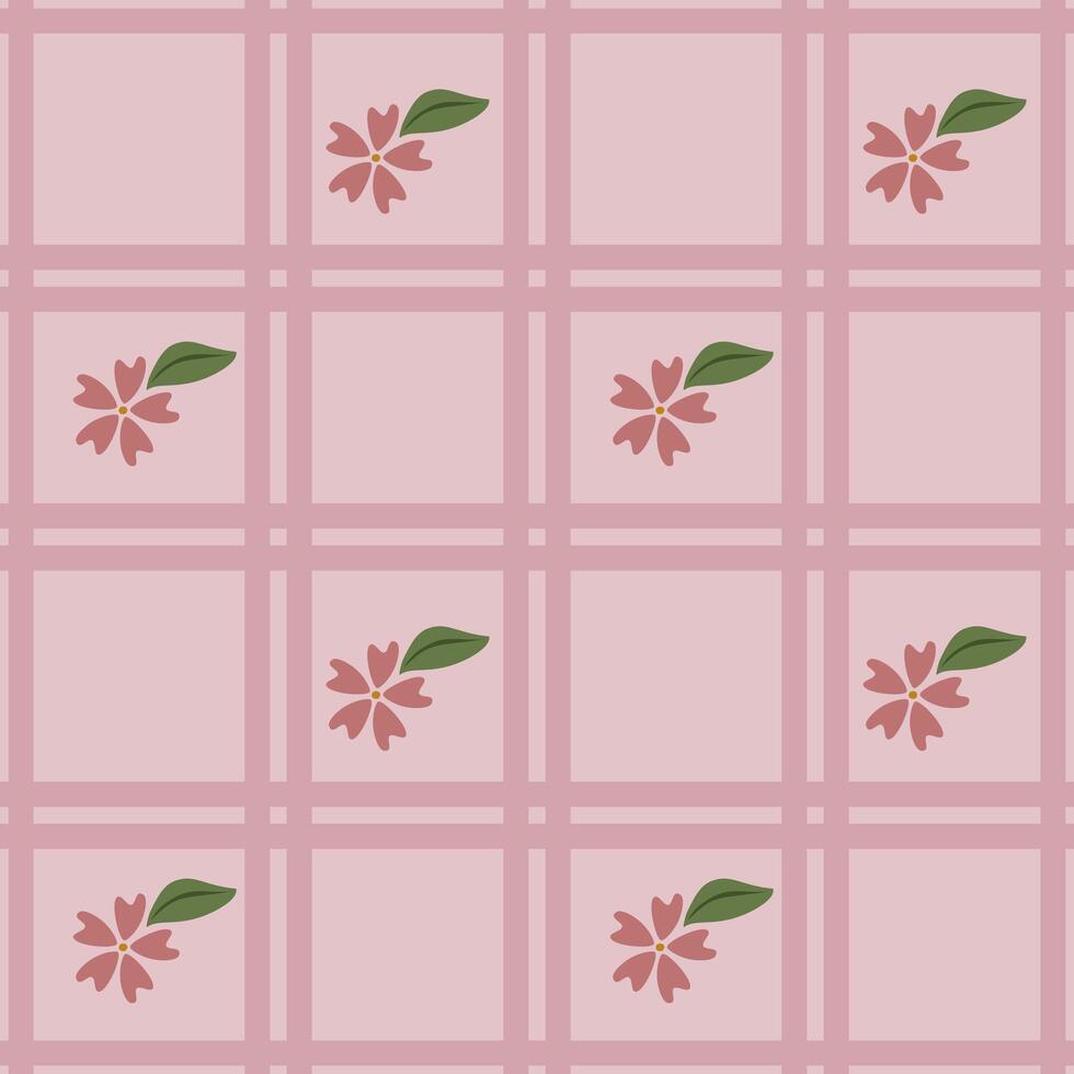 Seamless pattern featuring delicate pink flowers and leaves on a soft pink background, overlaid with a subtle grid for a charming and elegant design. Pro Vector