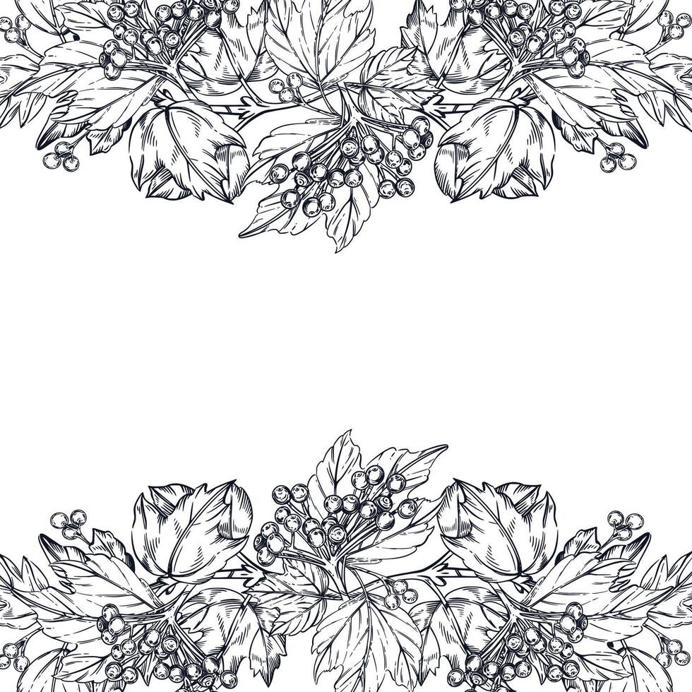 frame of viburnum berries, viburnum leaves. All objects are hand-drawn with ink, the illustration is suitable for product label design, cosmetics, tableware and textile printing Pro Vector